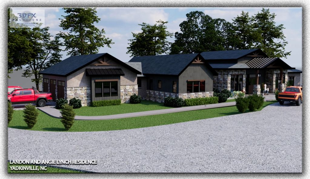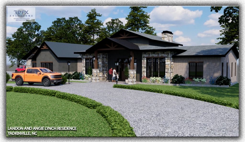 Landon and Angie Lynch called us earlier this year to provide renderings for a set of plans they had drawn by another designer. However, upon creating the model, we noticed some problems while constructing the 3D model and had to make some changes to the overall design. The renderings shown here are the resu