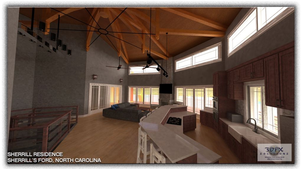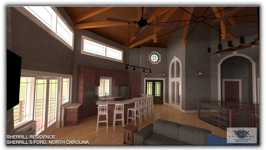 Greg and Donna Scapellati came to us for a custom home design on some land they had purchased in Denver, NC. They wanted a nice one level home that would accommodate all their needs, including hosting friends and family on the weekends. They contacted 3DFX Soluti