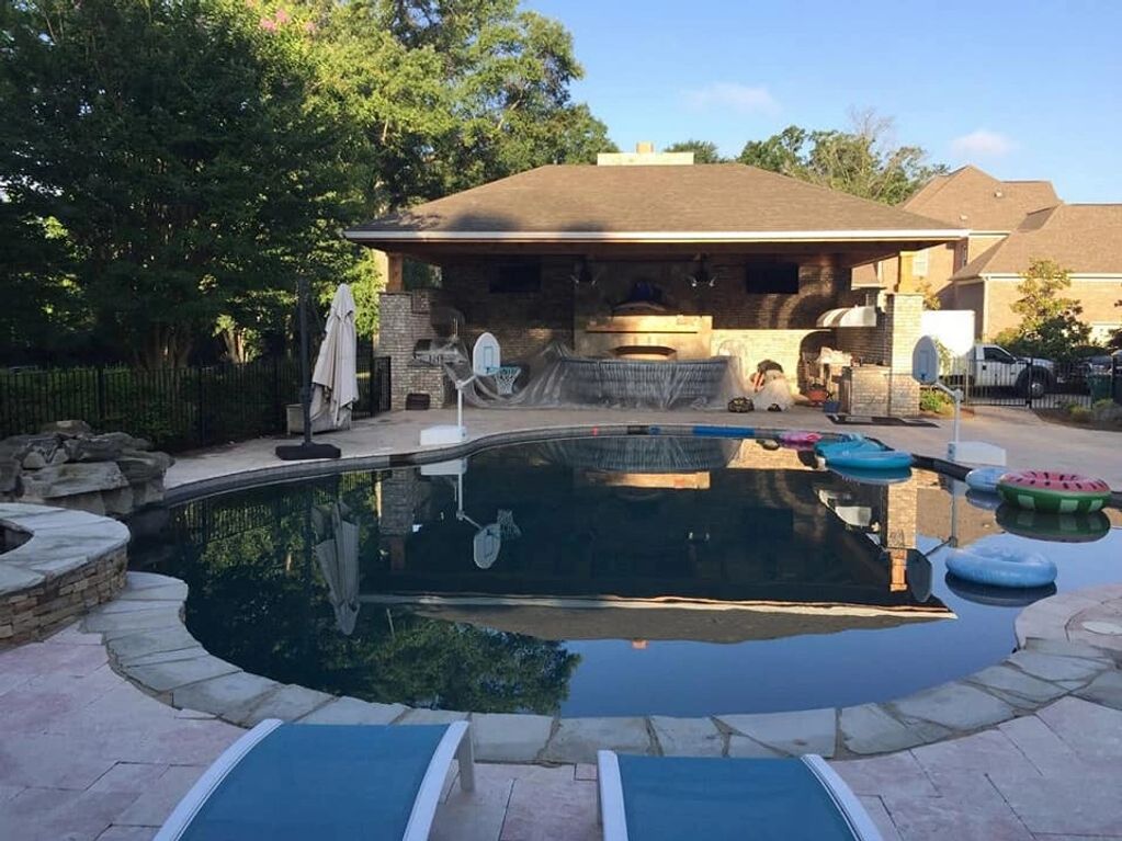 Tim Hefner came to us through DiChito Builders to add an new covered deck along the rear of his home and also create a pergola covered area with a fireplace to entertain guests around his pool area. We sat down with him and listened to his ideas, and created t